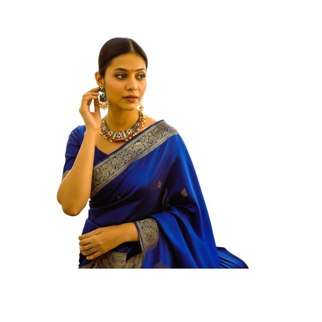 Elevate your festive and bridal wardrobe with our Royal Blue Meenakari Kundan Necklace & Earring Set, a masterpiece of traditional craftsmanship. This luxurious set features intricate blue Meenakari work adorned with sparkling Kundan stones, complemented with red bead detailing and elegant pearls.