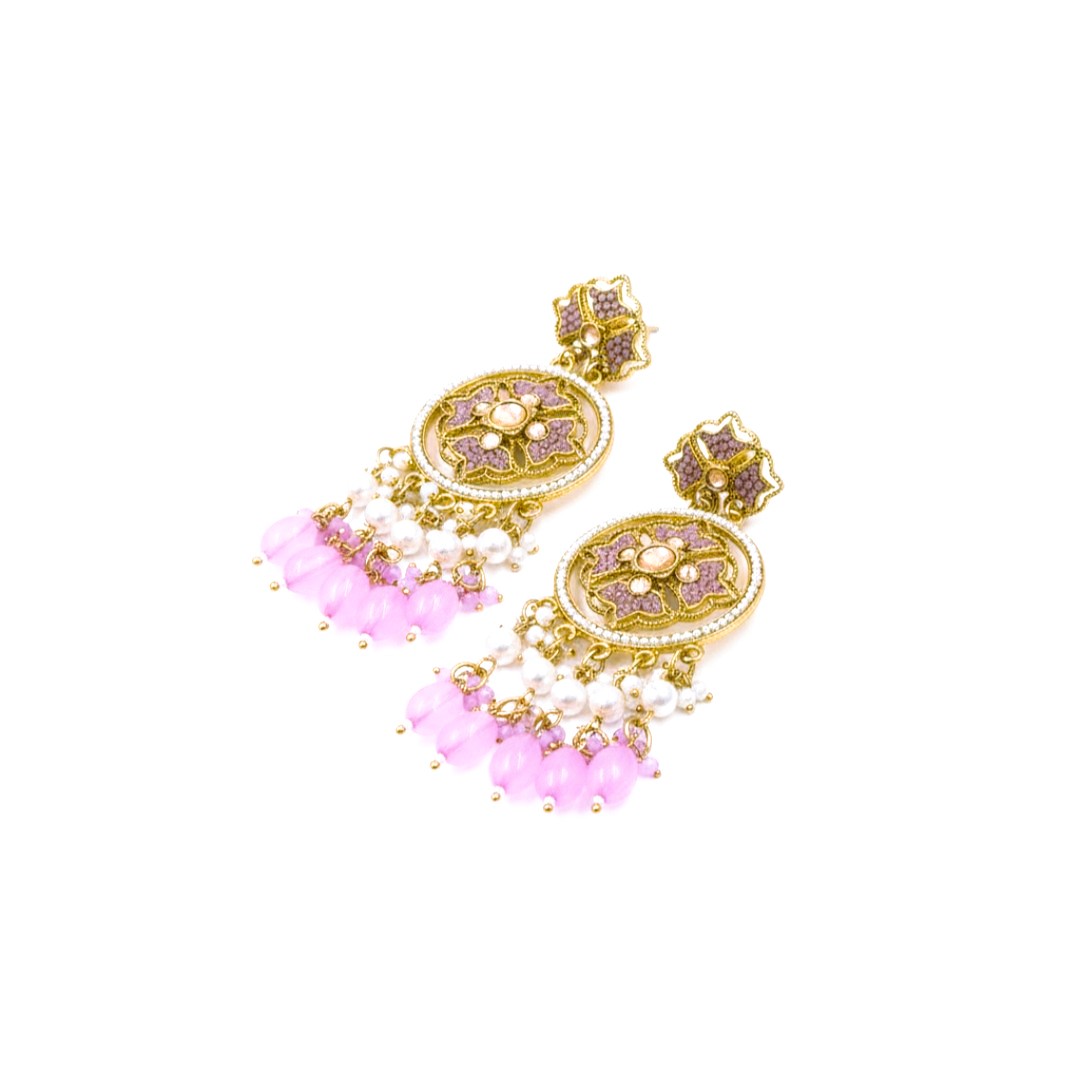 Grace meets glamour in our Blush Bloom Chandbali Earrings, crafted for the woman who adores subtle sophistication. These earrings feature a delicate floral design in golden tones, highlighted with soft blush pink enamel and pearls that add a dreamy, romantic touch. The pastel pink drops at the bottom enhance their beauty, making them ideal for festive events, weddings, or elegant brunches.