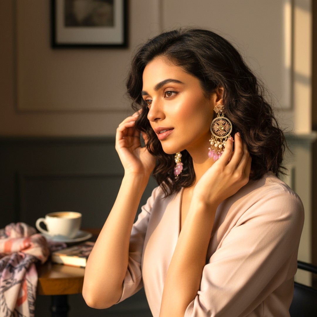 Designed to pair seamlessly with ethnic and Indo-western outfits, these earrings are lightweight, skin-friendly, and crafted with exquisite attention to detail — making them a statement piece for your jewelry collection.