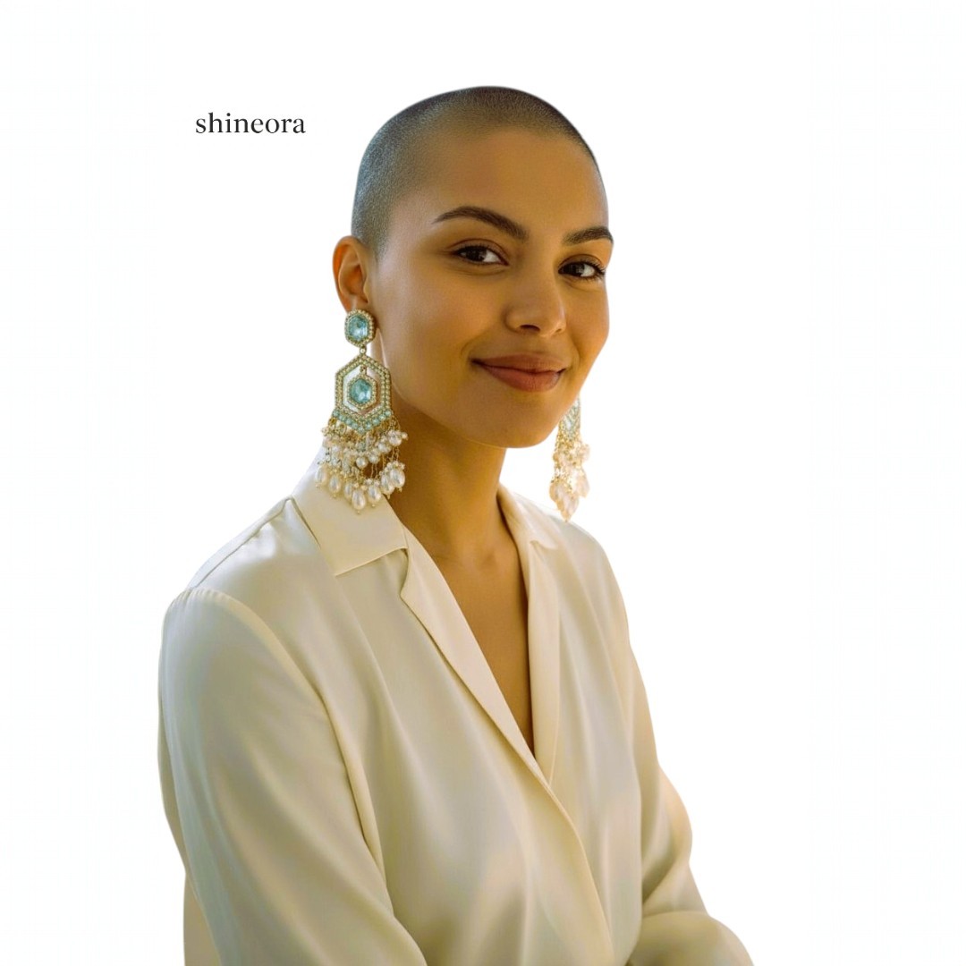 The serene aqua-blue hue mirrors the calm of the ocean, while the pearls add a touch of timeless grace — making this pair ideal for festive occasions, evening events, or elegant celebrations. Crafted with a premium gold finish, these earrings reflect the beauty of fine craftsmanship and modern allure.