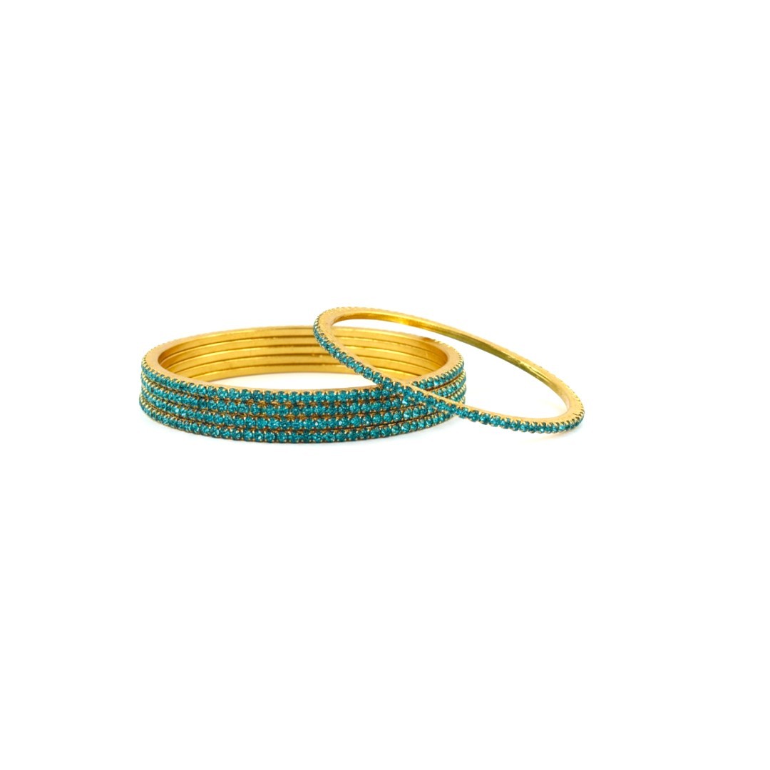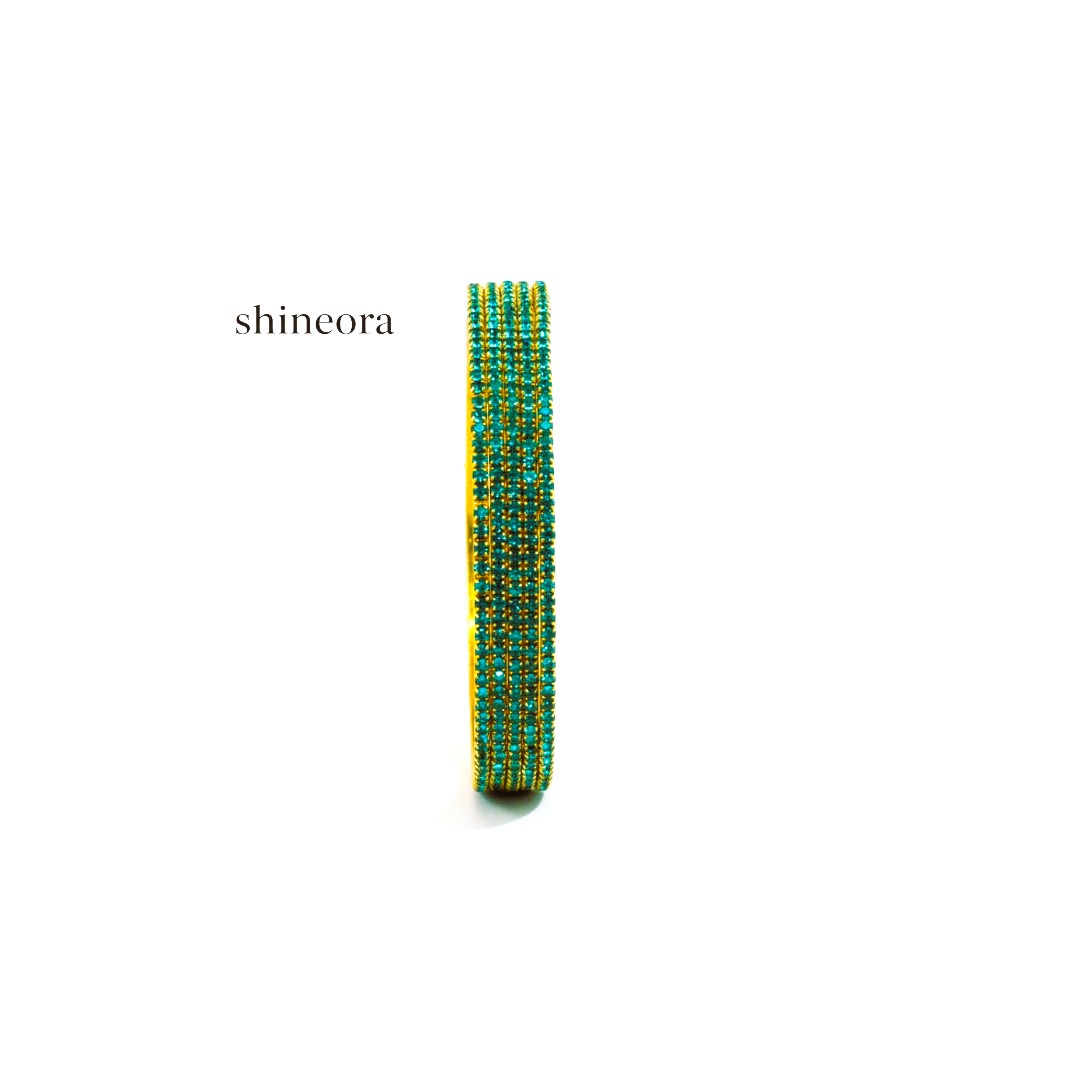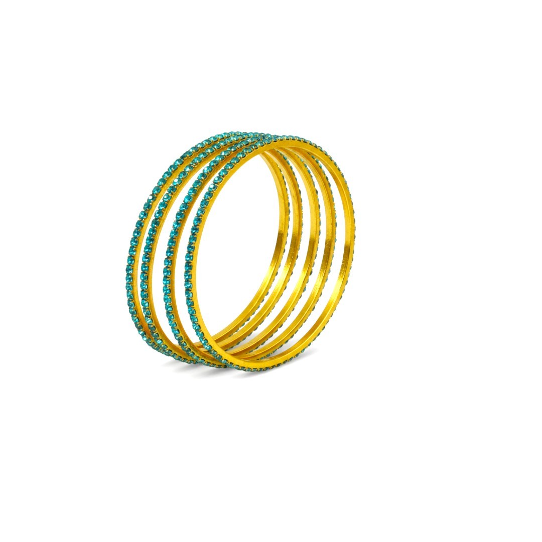Add a touch of traditional elegance to your ethnic ensemble with this stunning set of 4 gold-toned bangles from SHINEORA. These exquisite bangles feature intricate red stone work that catches the light beautifully, creating a mesmerizing sparkle with every movement. The classic design combines the timeless appeal of traditional Indian jewelry with contemporary styling, making them perfect for both festive occasions and special events. Each bangle in this set is crafted with precision, showcasing a delicate pattern of red stones arranged in continuous rows against the lustrous gold-toned base. The bangles are sized to fit most wrists comfortably and can be coordinated with various Indian outfits, from sarees to lehengas. This versatile set makes for a stunning addition to your jewelry collection and can be paired with other traditional accessories for a complete look. The lightweight construction ensures comfortable wear throughout long celebrations and events.