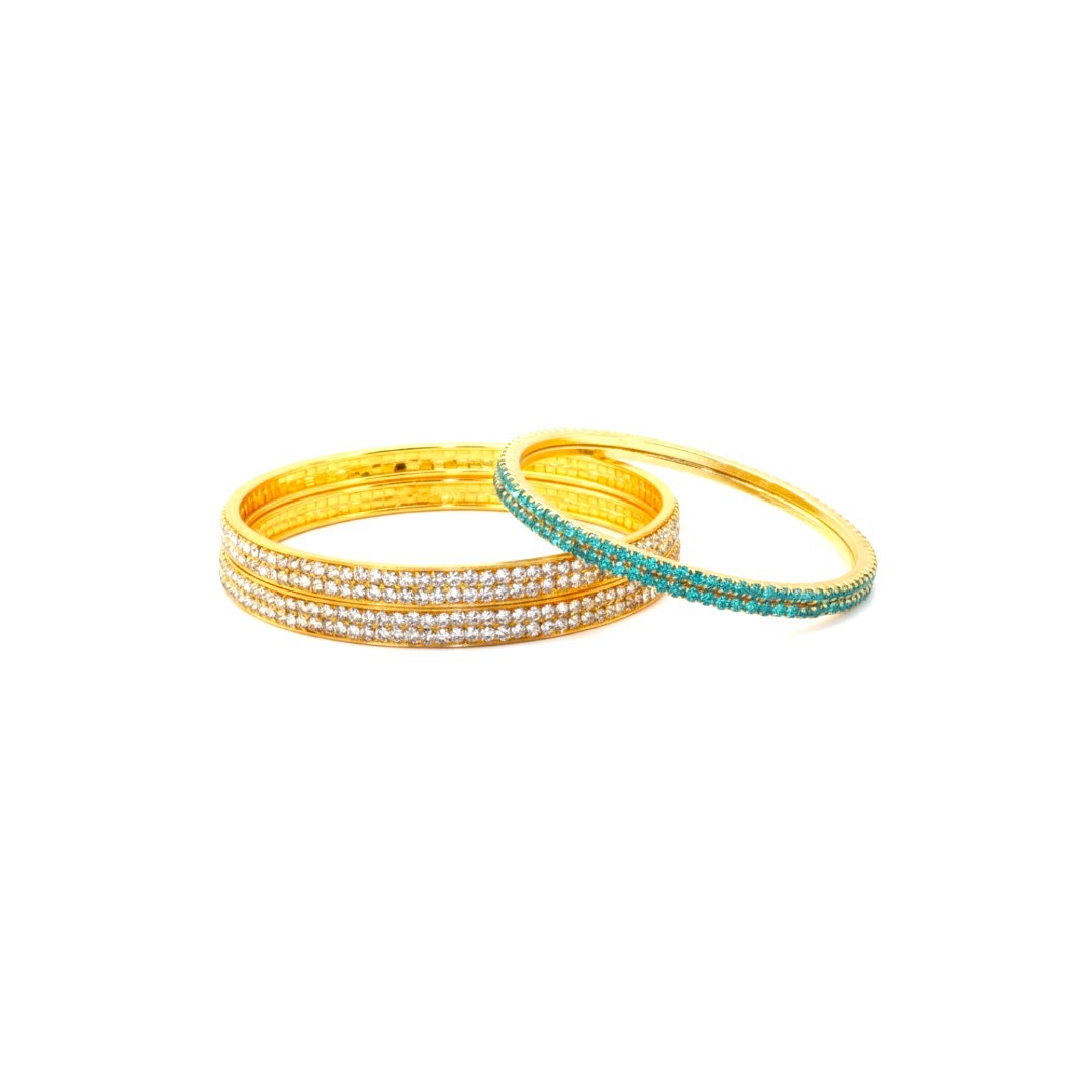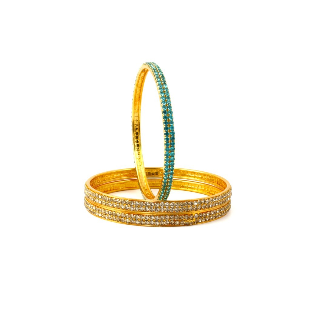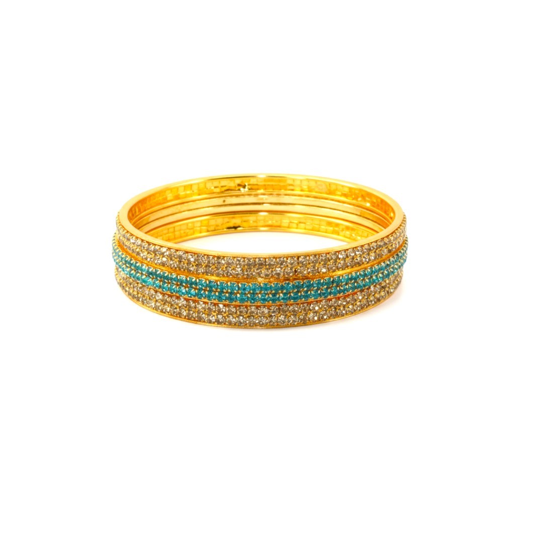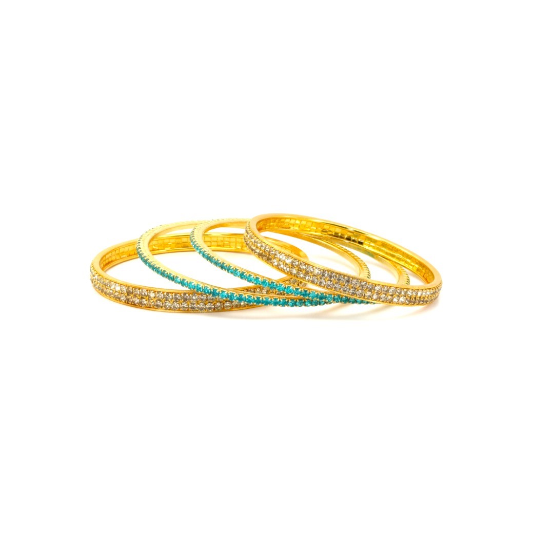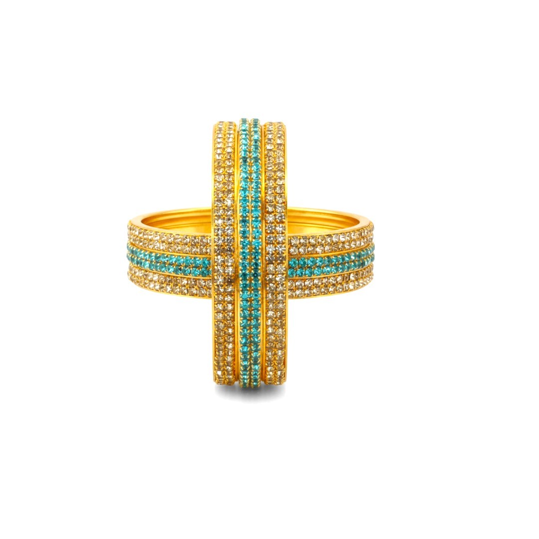 Dive into elegance with the Shineora Aqua Radiance Bangles, a breathtaking blend of golden brilliance and ocean-inspired charm. Each bangle is adorned with rows of dazzling white crystals and serene aqua blue stones, reflecting light with every graceful move.