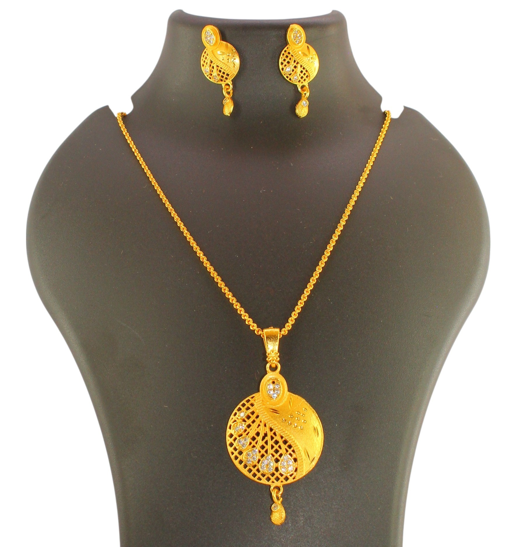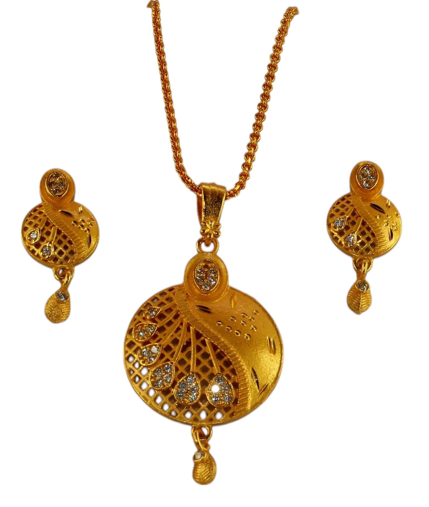 Beautiful crystal studding adds sparkle and elegance to both the pendant and earrings, enhancing the overall appeal. Traditional yet contemporary design makes it suitable for both casual and formal wear, complementing various outfits