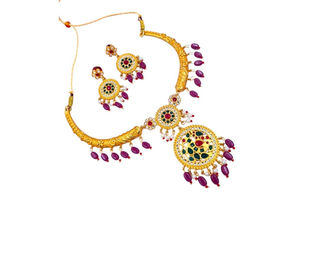 This set includes matching earrings, making it a perfect choice for bridesmaids, wedding guests, and festive celebrations. Lightweight, skin-friendly, and designed to stand out, it blends heritage craftsmanship with modern elegance—ideal for lehengas, sarees, and Indo-western outfits.