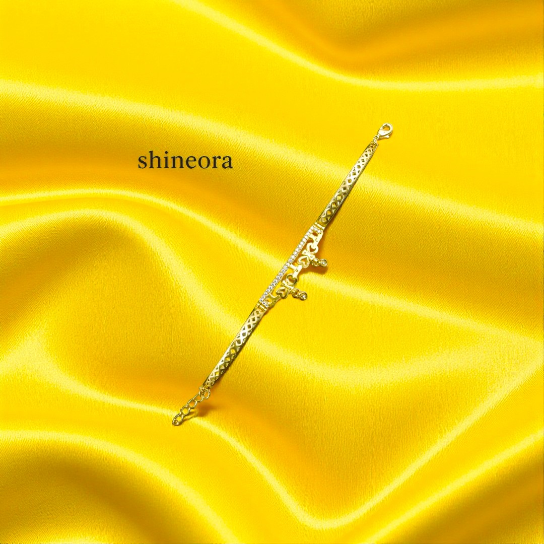 Delicate, traditional, and effortlessly charming — the Shineora Nupur Grace Bracelet is designed to bring a touch of heritage elegance to your everyday look. Crafted in one-gram gold plating, it features intricate lattice detailing and dainty ghungroo charms that create a subtle, musical allure. Lightweight and comfortable for daily wear, this bracelet beautifully blends ethnic artistry with modern sophistication — a perfect reflection of Shineora’s timeless craftsmanship.