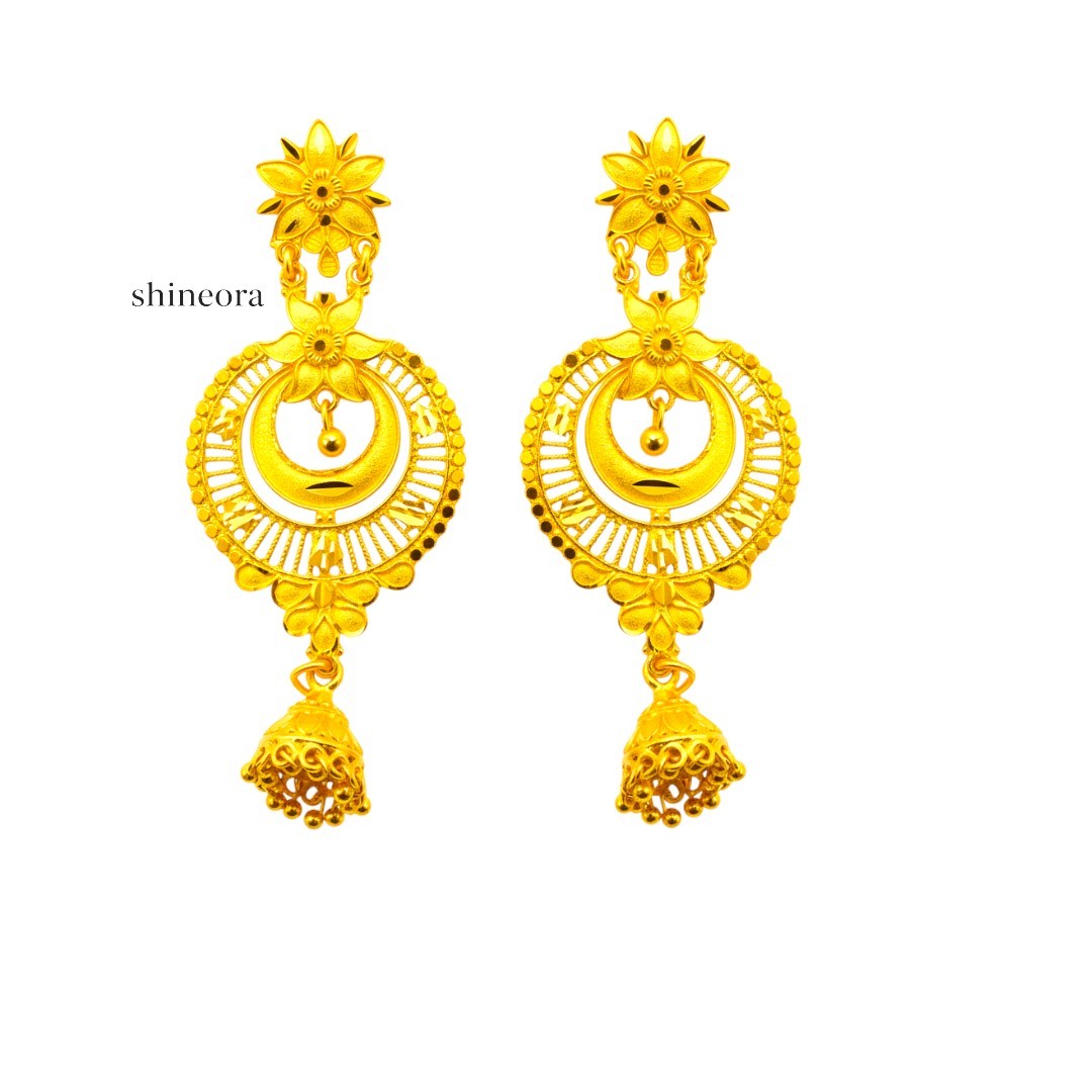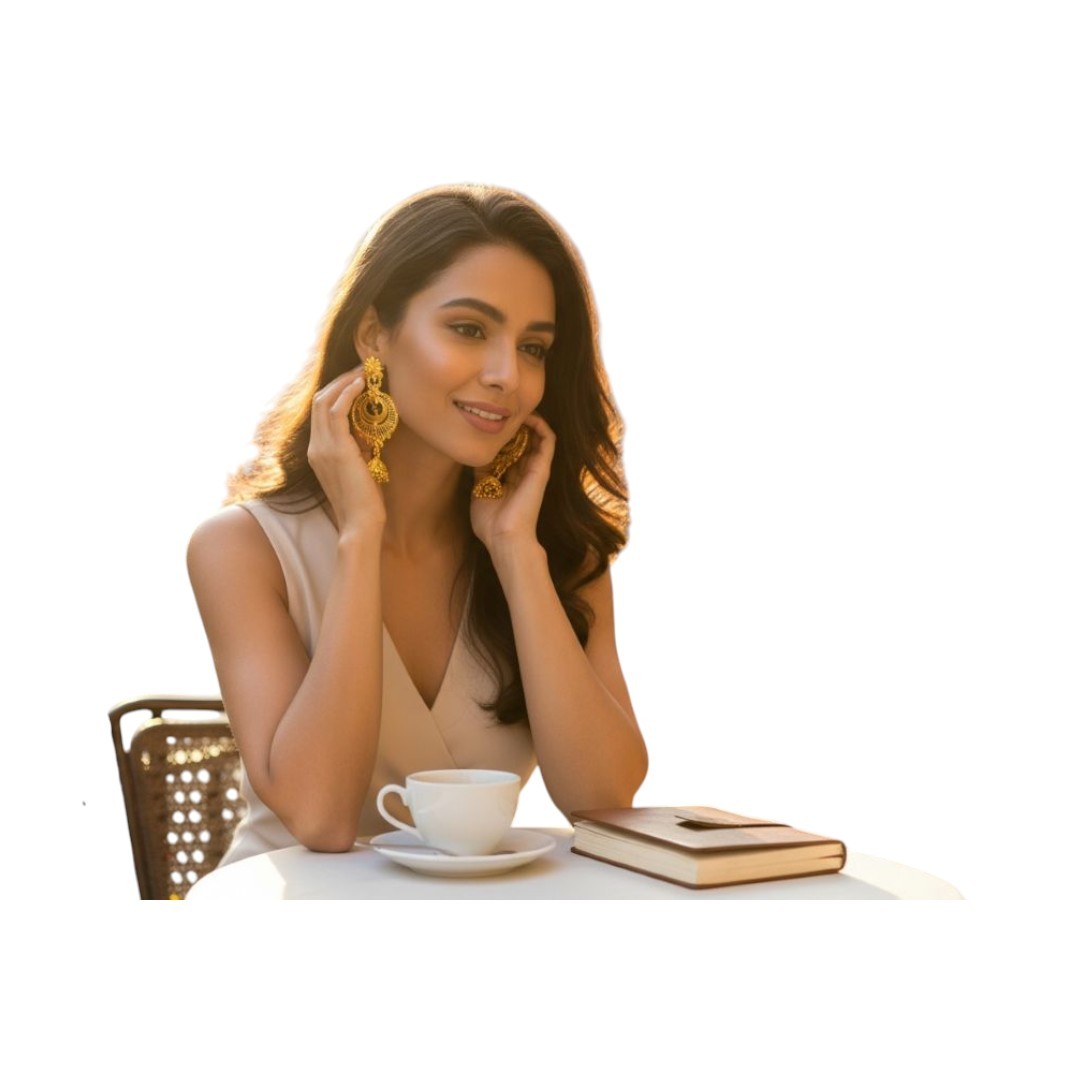 Celebrate traditional beauty with the Sunehri Kalika Earrings, a stunning pair inspired by timeless Indian artistry. Crafted in a radiant premium gold finish, these earrings feature intricate floral motifs and circular detailing that reflect elegance and heritage in every curve.